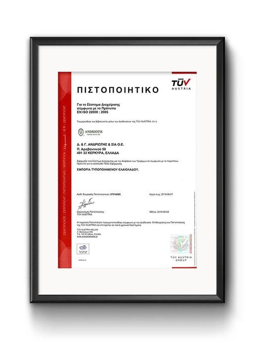 Σήμερα η επιχείρηση Ανδριώτης αποτελεί συνώνυμο αξιοπιστίας και ποιότητας στη διακίνηση και εμπορία ελαιολάδου. Με κέντρα παραλαβής στην Κέρκυρα και κατά τόπους συνεργάτες στην υπόλοιπη Ελλάδα, αλλά και το εξωτερικό, η Ανδριώτης διακινεί πλέον το ελληνικό ελαιόλαδο και σε πολλές ευρωπαϊκές χώρες.
