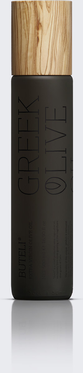 Το εξαιρετικά παρθένο ελαιόλαδο Buteli® πωλείται μόνο σε επιλεγμένα σημεία και σε εξαιρετικά μικρές ποσότητες, σε συλλεκτική γυάλινη φιάλη 500 ml, με ξύλινο χειροποίητο πώμα, το οποίο προέρχεται από κλαδιά ελαιόδεντρου, επιλεγμένα και επεξεργασμένα μετά το εποχιακό κλάδεμα.
