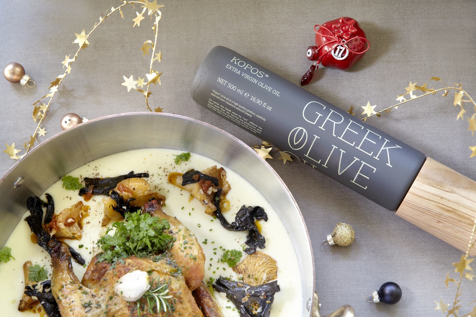 25 Δεκεμβρίου 2016Ο Περικλής Κοσκινάς, Κερκυραίος γέννημα-θρέμμα, είναι chef και εκ των ιδιοκτητών του εστιατορίου Cookoovaya στην Αθήνα. Του ζητήσαμε να μαγειρέψει κάτι εορταστικό, αλλά όχι αναμενόμενο, χρησιμοποιώντας το δικό μας λάδι. Και εκείνος, μας ανοίγει την όρεξη με ένα ξεχωριστό πιάτο!
